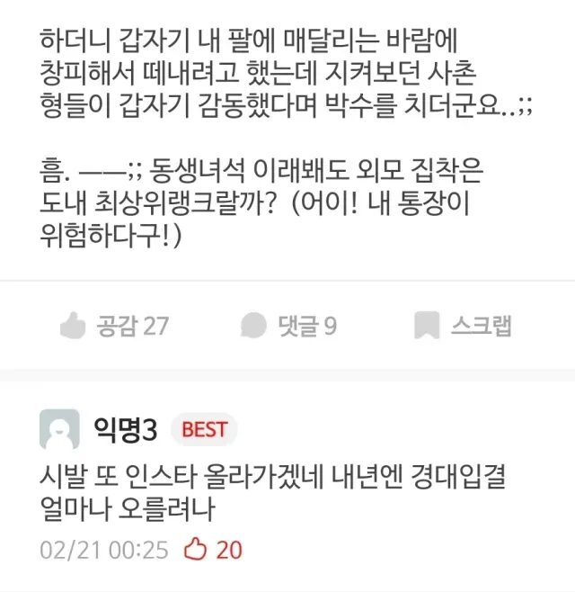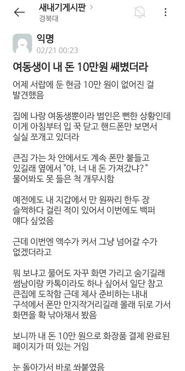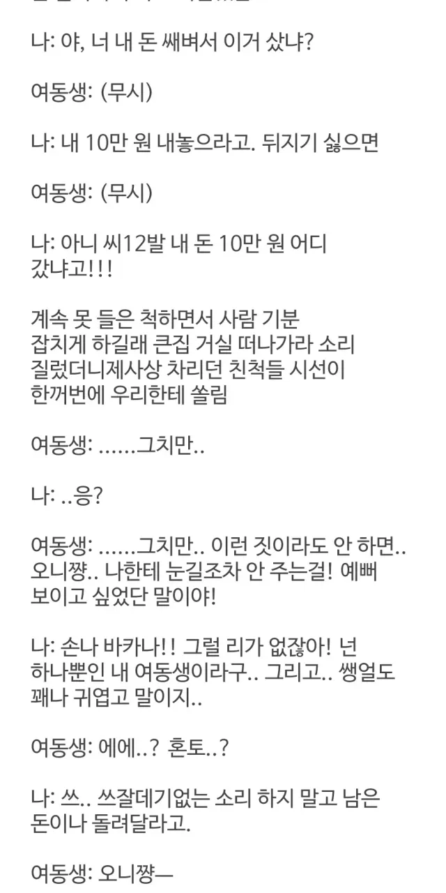 여동생이 내 돈 10만원 쌔볐더라