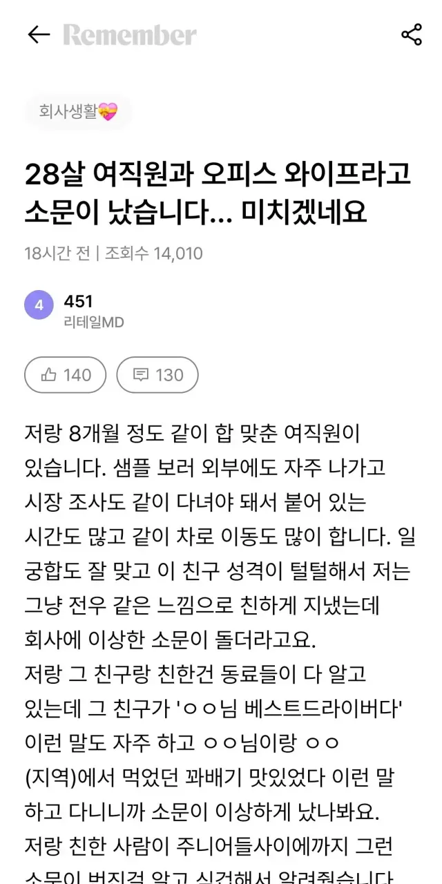 28살 여직원과 오피스 와이프라고 소문나서 억울