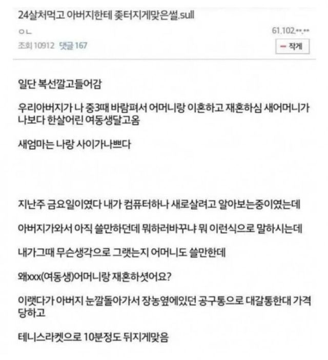 24살인데 아버지한테 맞은 썰