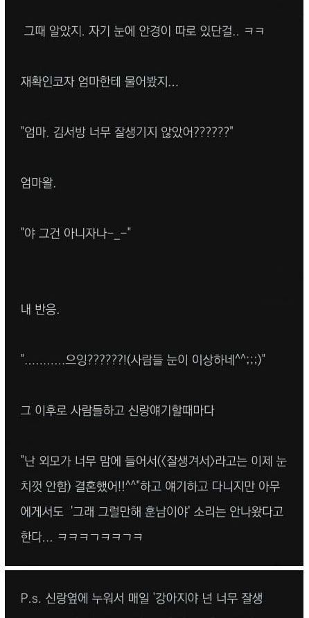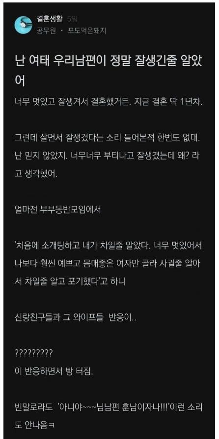 남편이 너무 잘생겼다는 아내 썰