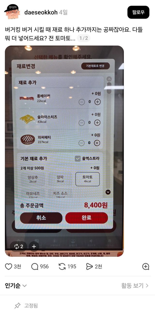 기본 재료 1개 추가 공짜
